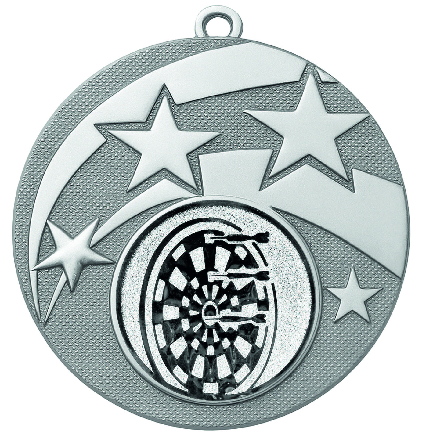 Silver Star Darts Medal - FREE Ribbon - BIE.M9457.02 - This 50mm Metal cast Medal includes a free Darts logo and free premium quality ribbon.