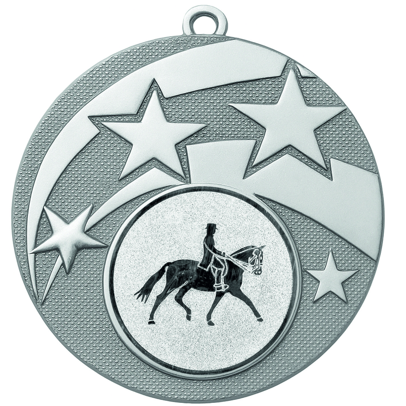 Silver Star Dressage Medal - FREE Ribbon - BIE.M9457.02 - This 50mm Metal cast Medal includes a free Dressage logo and free premium quality ribbon.