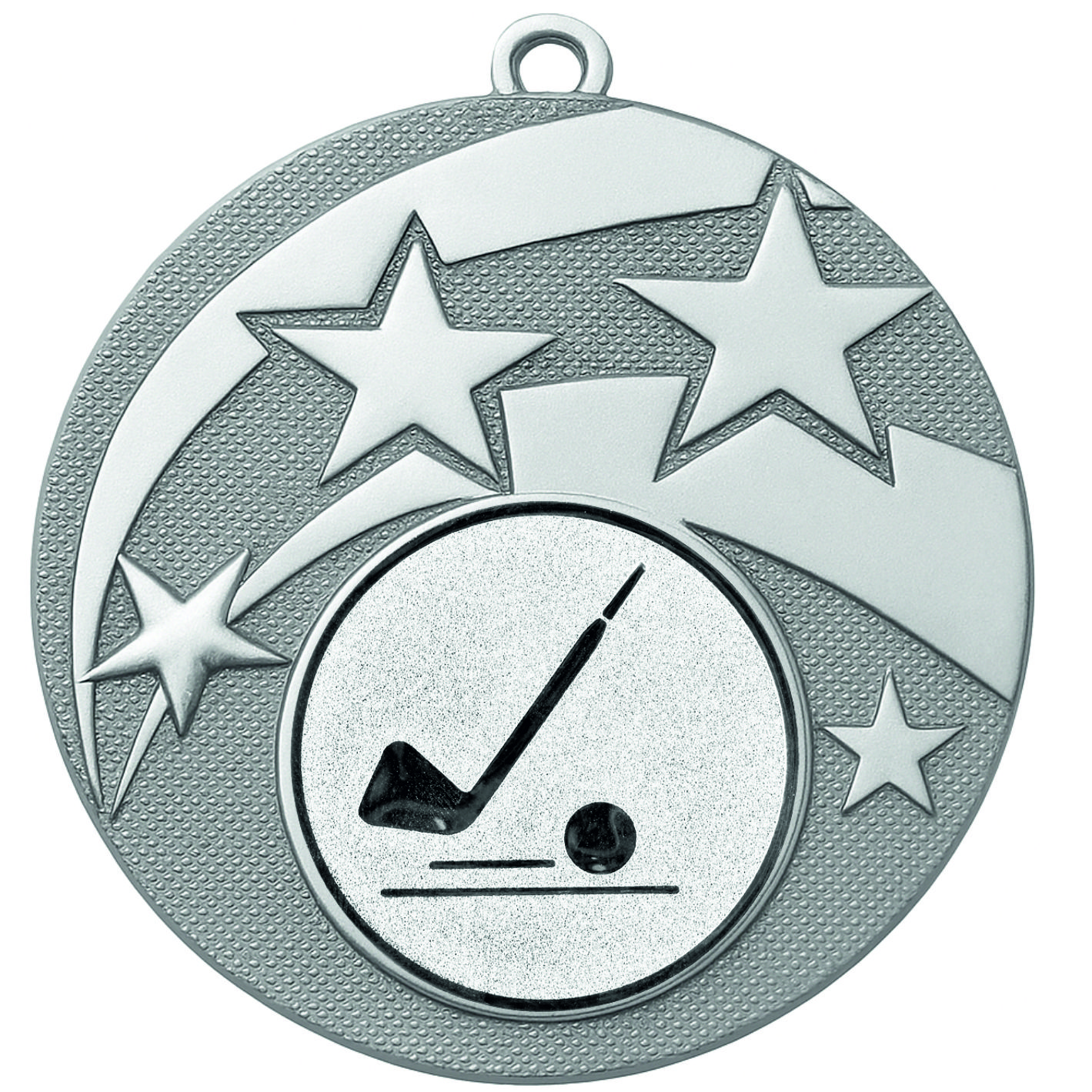 Silver Star Golf Putter Medal - FREE Ribbon - BIE.M9457.02 - This 50mm Metal cast Medal includes a free Golf Putter logo and free premium quality ribbon.