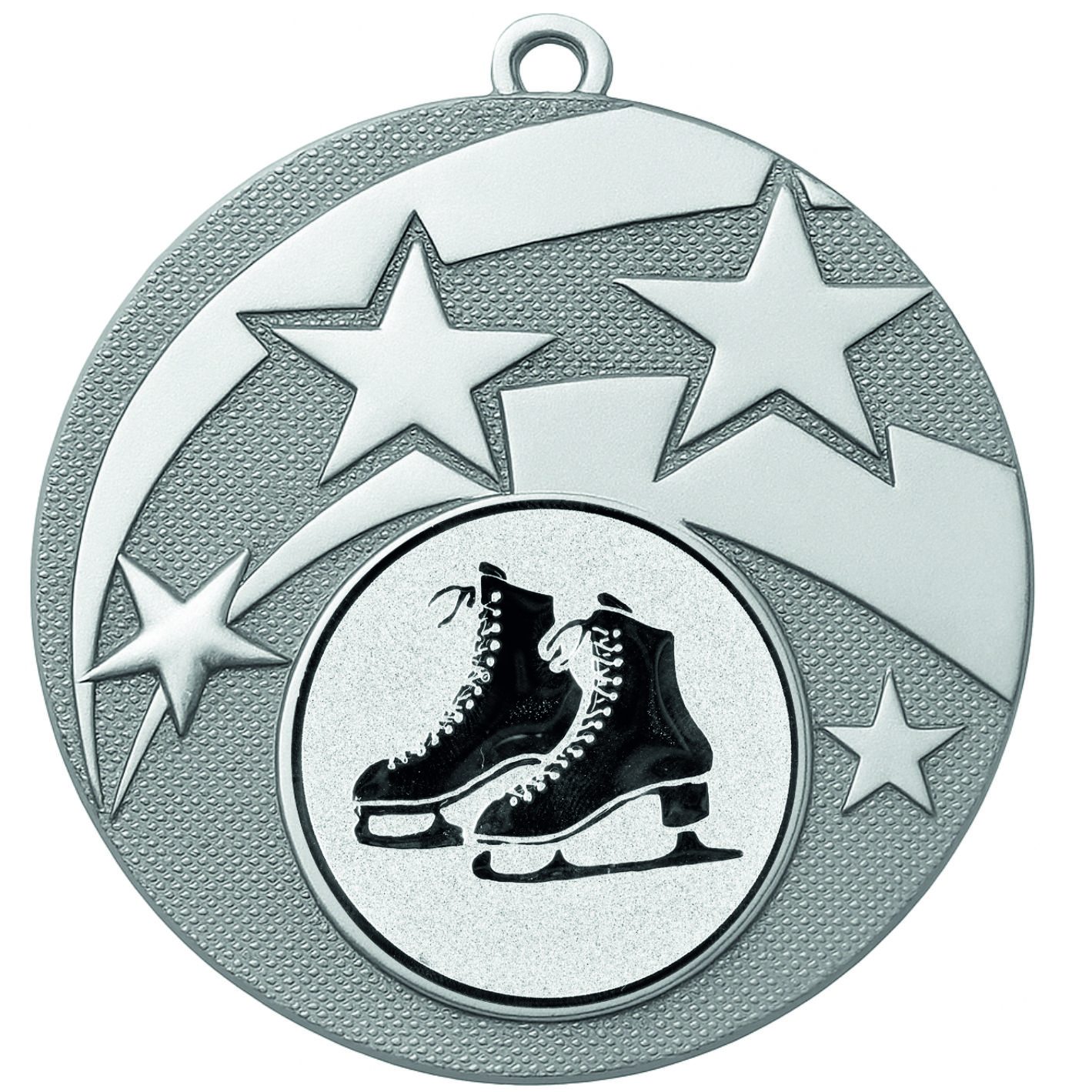 Silver Star Ice Skating Medal -FREE Ribbon -BIE.M9457.02 - This 50mm Metal cast Medal includes a free Ice Skating logo and free premium quality ribbon.