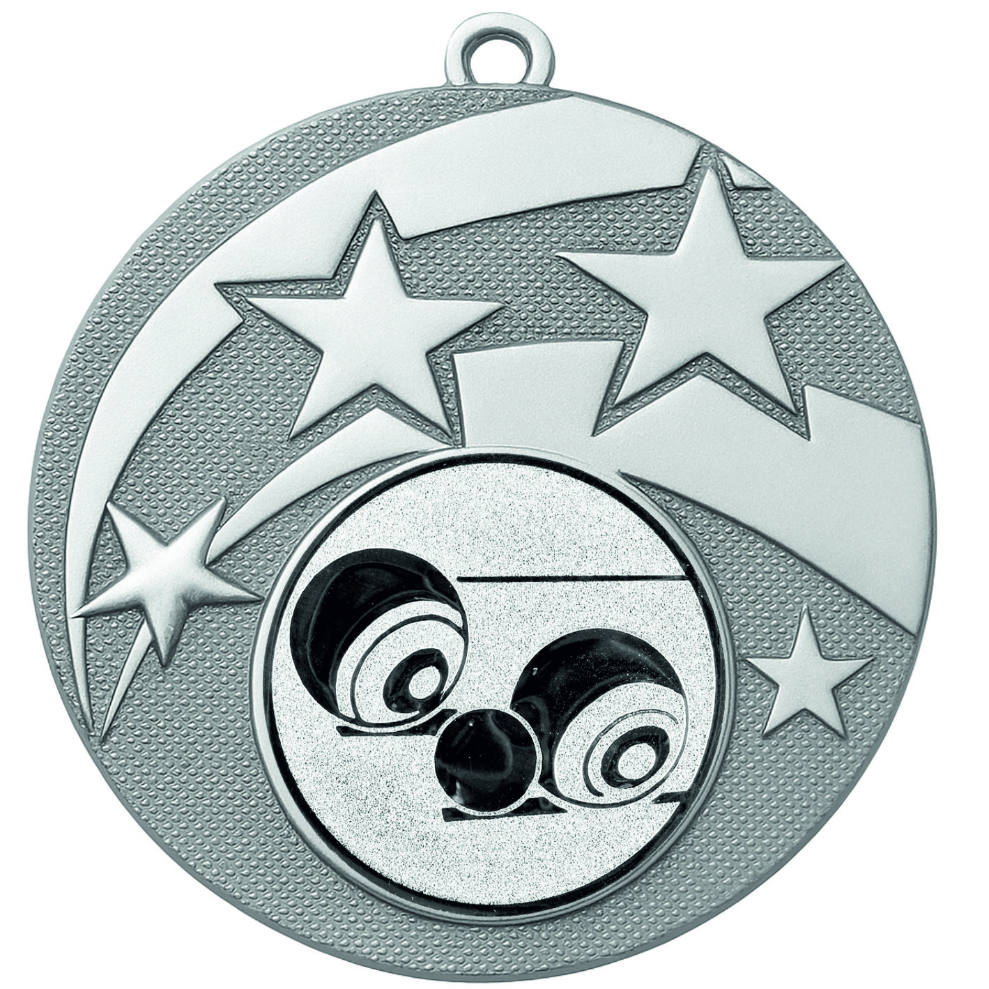 Silver Star Lawn Bowls Medal -FREE Ribbon -BIE.M9457.02 - This 50mm Metal cast Medal includes a free Lawn Bowls logo and free premium quality ribbon.