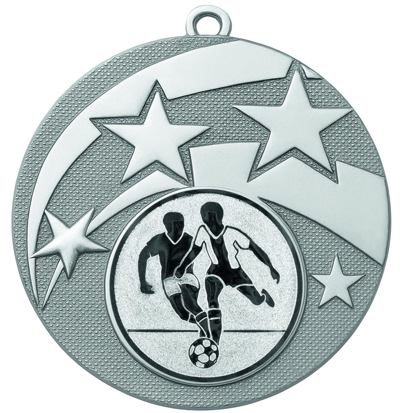 Silver Star Male Football Medal - FREE Ribbon - BIE.M9457.02 - This 50mm Metal cast Medal includes a free Male Football logo and free premium quality ribbon.