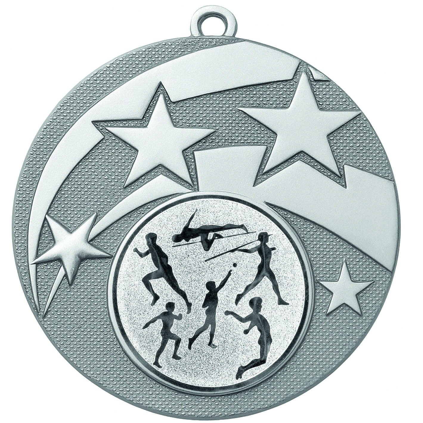 Silver Star Multi Athletics Medal -FREE Ribbon -BIE.M9457.02 - This 50mm Metal cast Medal includes a free Multi Athletics logo and free premium quality ribbon.