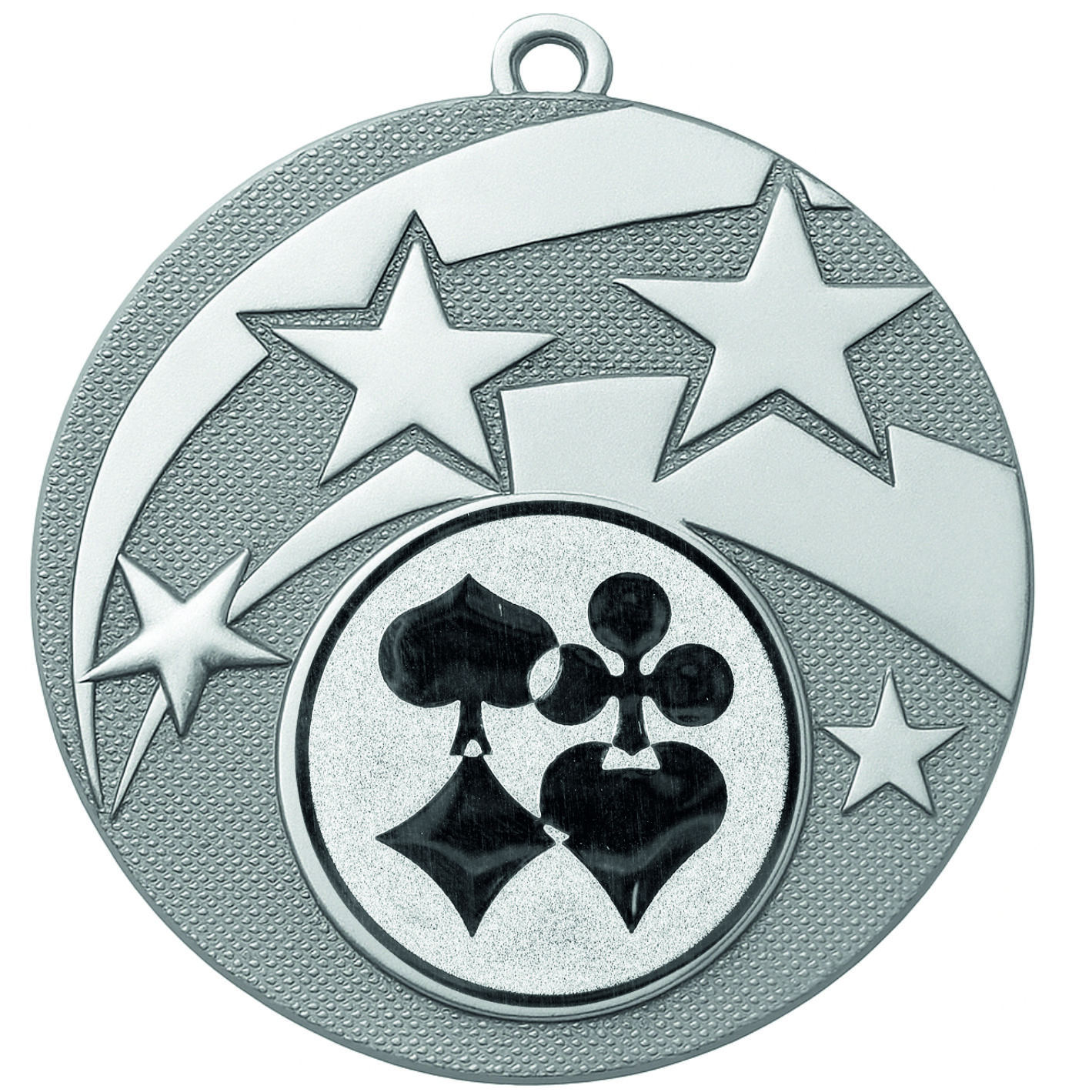 Silver Star Playing Card Medal -FREE Ribbon -BIE.M9457.02 - This 50mm Metal cast Medal includes a free Playing Card logo and free premium quality ribbon.