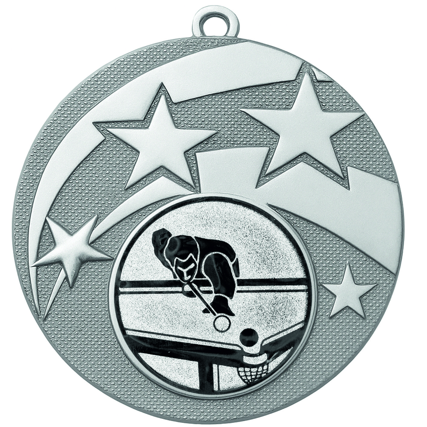 Silver Star Pool Medal -FREE Ribbon -BIE.M9457.02 - This 50mm Metal cast Medal includes a free Pool logo and free premium quality ribbon.