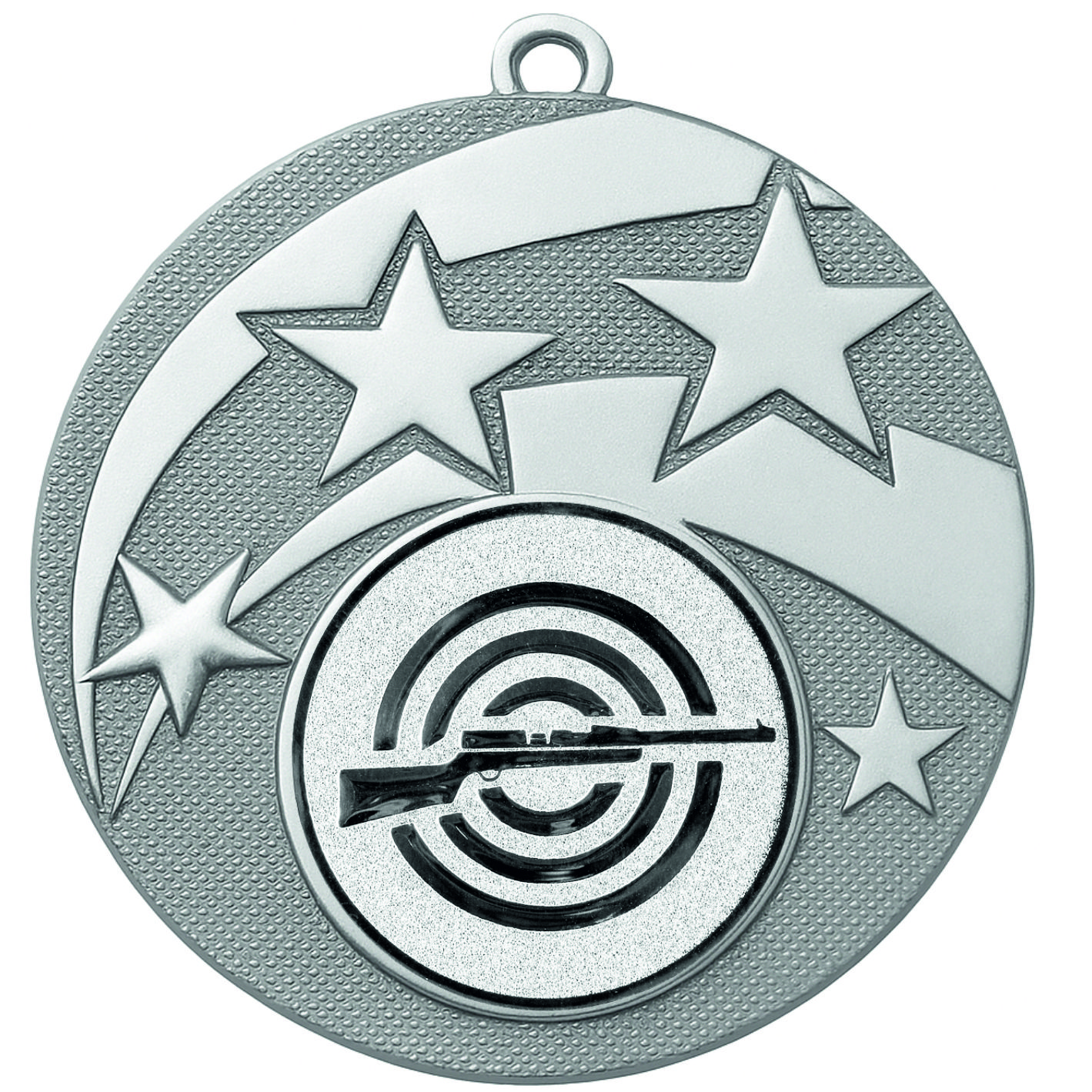 Silver Star Rifle Shooting Medal -FREE Ribbon -BIE.M9457.02 - This 50mm Metal cast Medal includes a free Rifle Shooting logo and free premium quality ribbon.