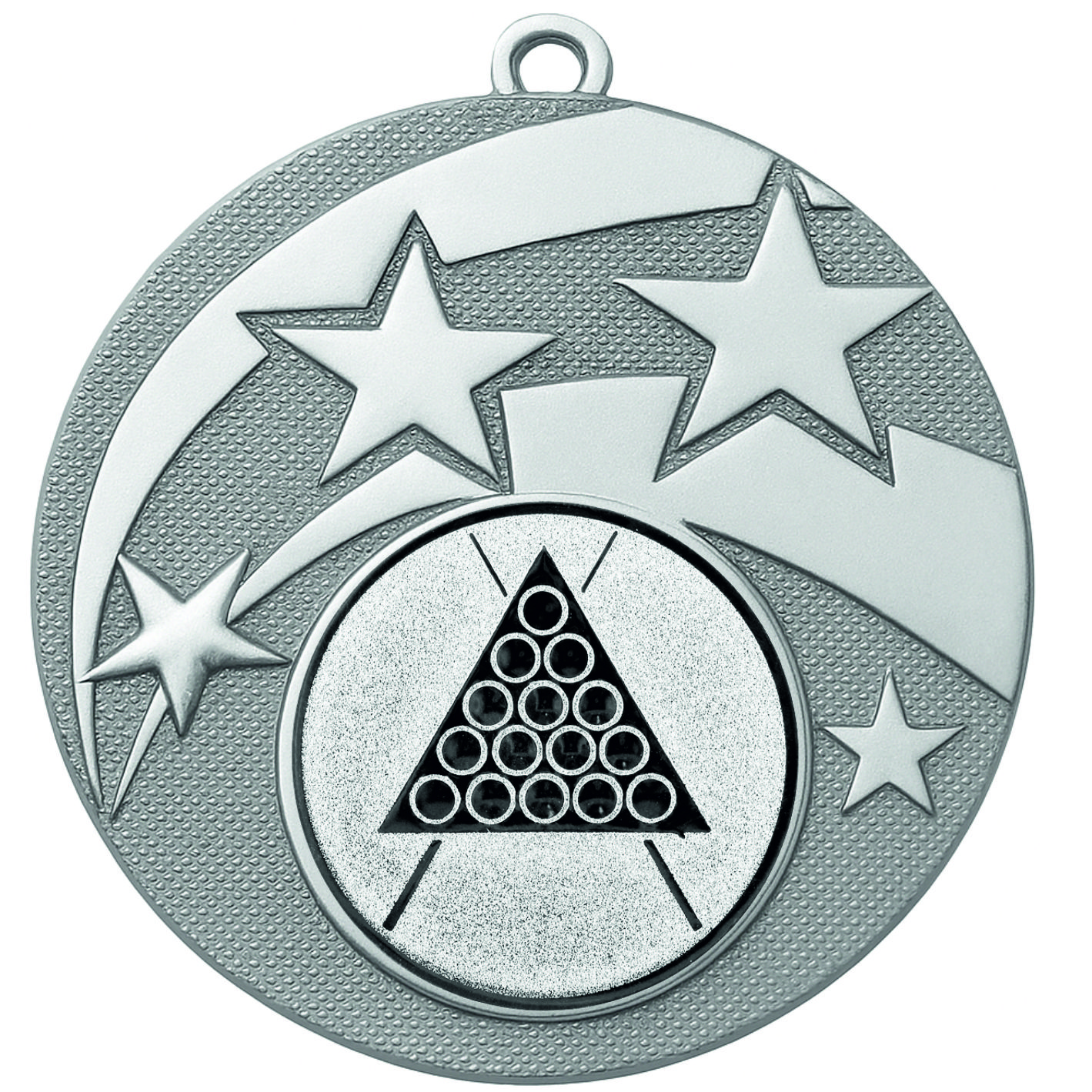 Silver Star Snooker Medal -FREE Ribbon -BIE.M9457.02 - This 50mm Metal cast Medal includes a free Snooker logo and free premium quality ribbon.