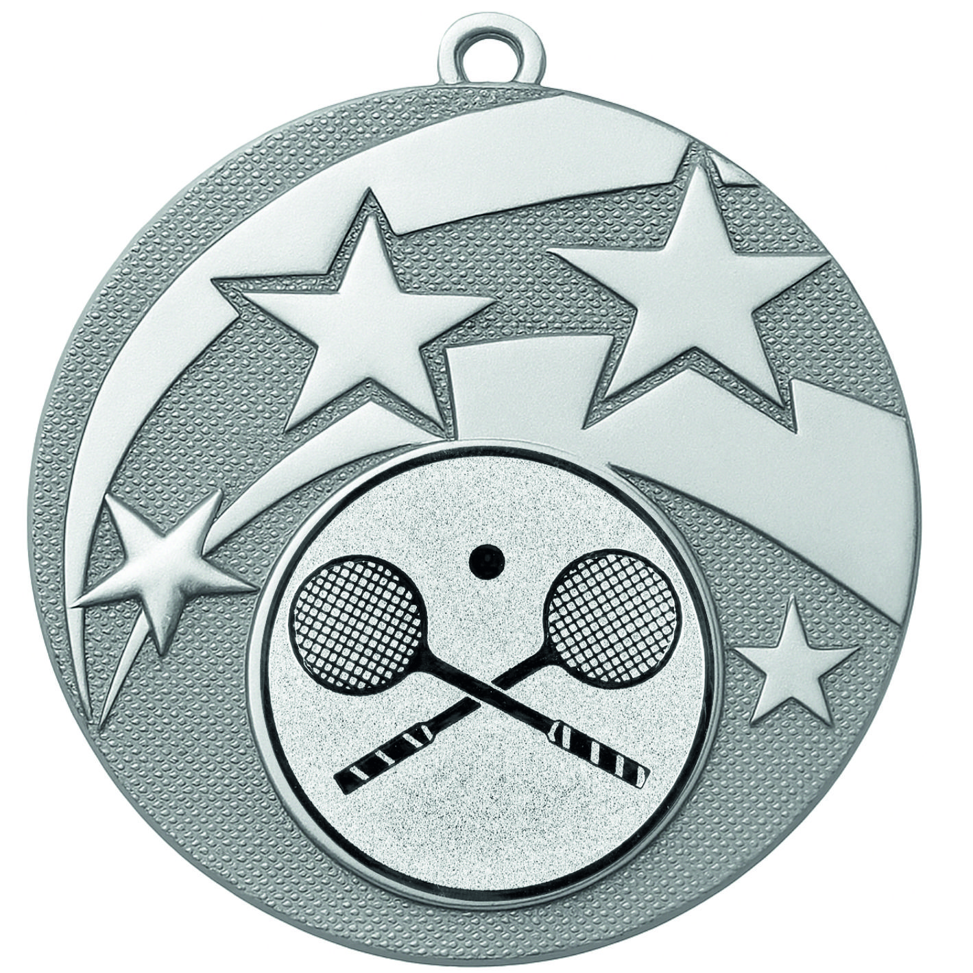 Silver Star Squash Medal -FREE Ribbon -BIE.M9457.02 - This 50mm Metal cast Medal includes a free Squash logo and free premium quality ribbon.