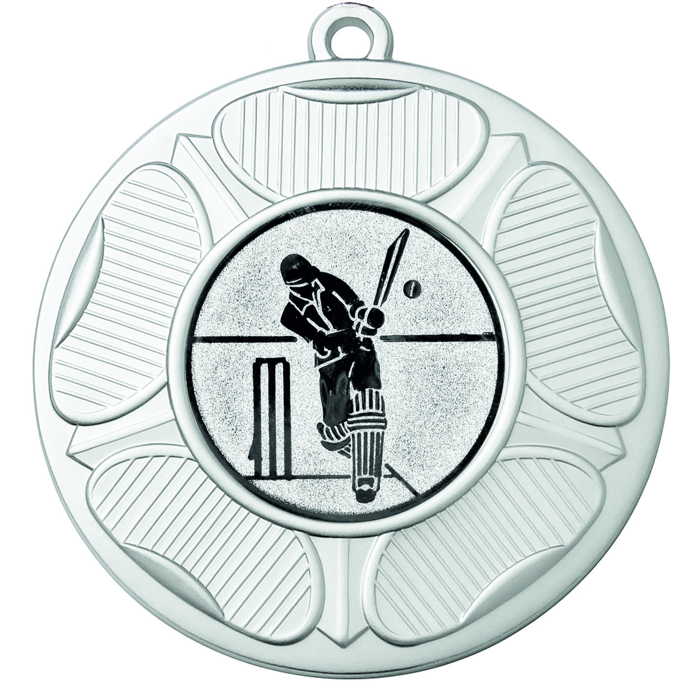 Silver Tudor Rose Cricket Medal-FREE Ribbon - BIE.M9458.02 - This 50mm Metal cast Medal includes a free Cricket logo and free premium quality ribbon.