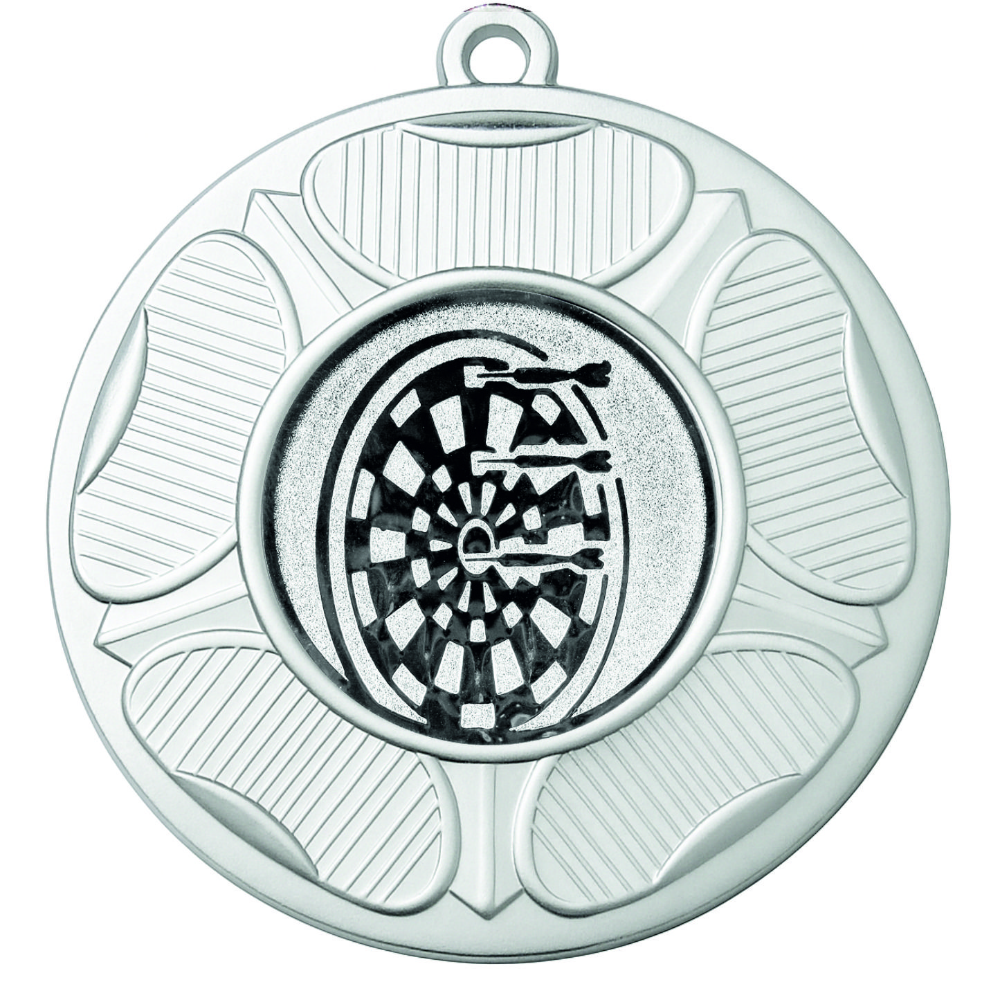 Silver Tudor Rose Darts Medal-FREE Ribbon - BIE.M9458.02 - This 50mm Metal cast Medal includes a free Darts logo and free premium quality ribbon.
