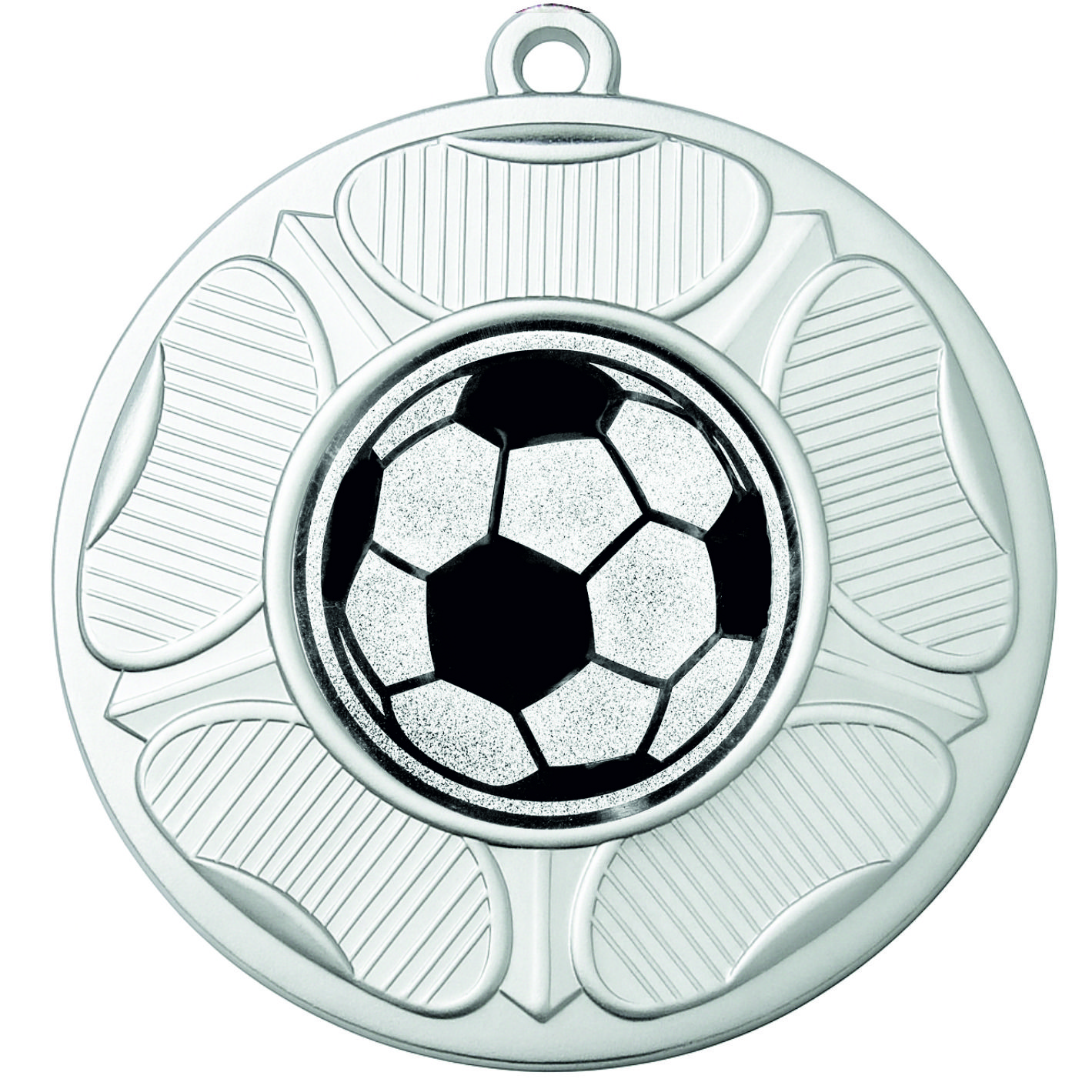 Silver Tudor Rose Football Medal - FREE Ribbon - BIE.M9458.02 - This 50mm Metal cast Medal includes a free Football logo and free premium quality ribbon.