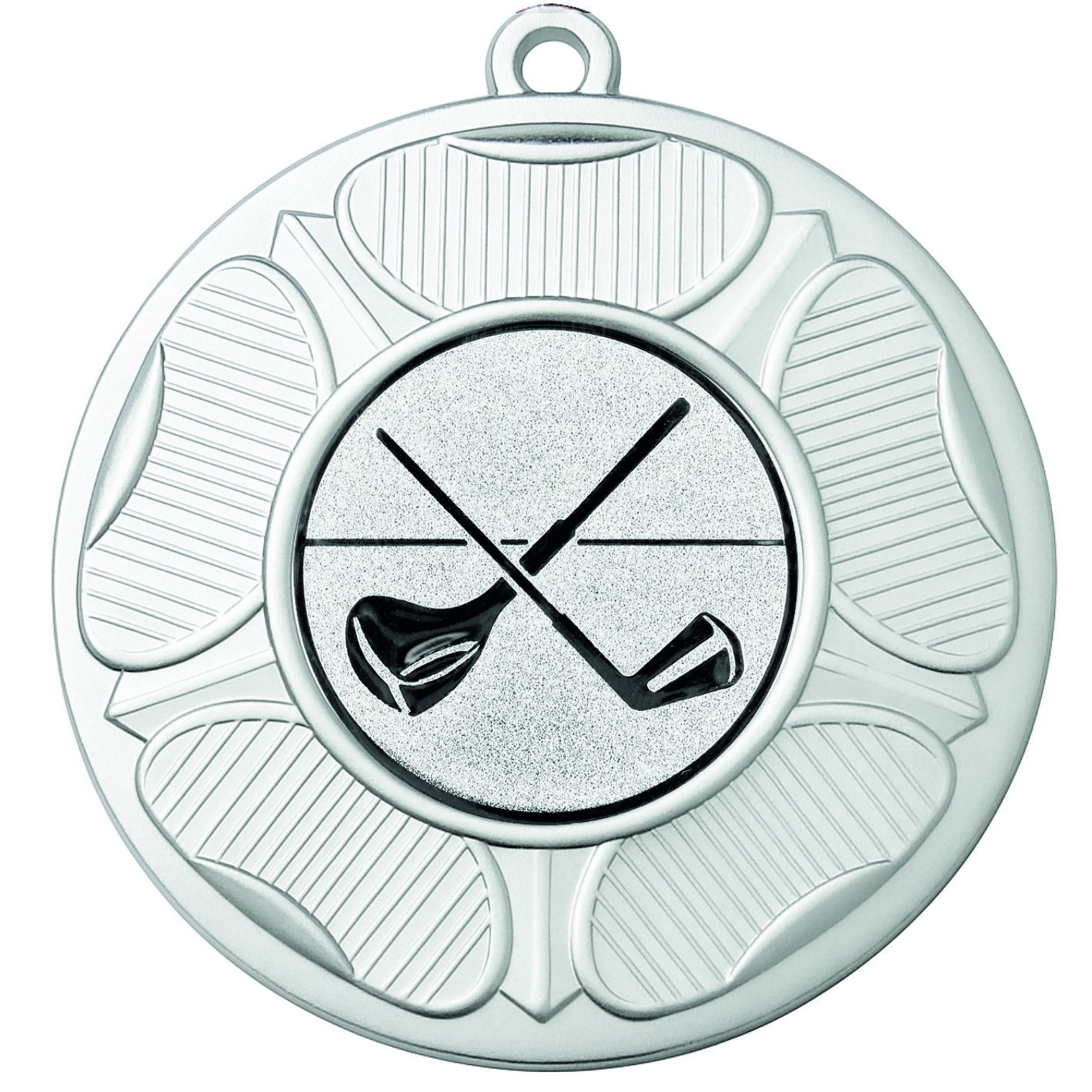 Silver Tudor Rose Golf Clubs Medal - FREE Ribbon - BIE.M9458.02 - This 50mm Metal cast Medal includes a free Golfer logo and free premium quality ribbon.