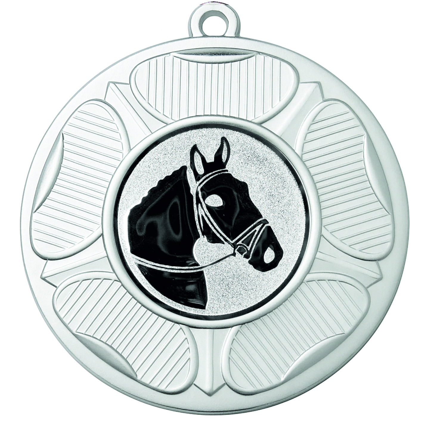 Silver Tudor Rose Horses Head Medal - FREE Ribbon - BIE.M9458.02 - This 50mm Metal cast Medal includes a free Horses Head logo and free premium quality ribbon.