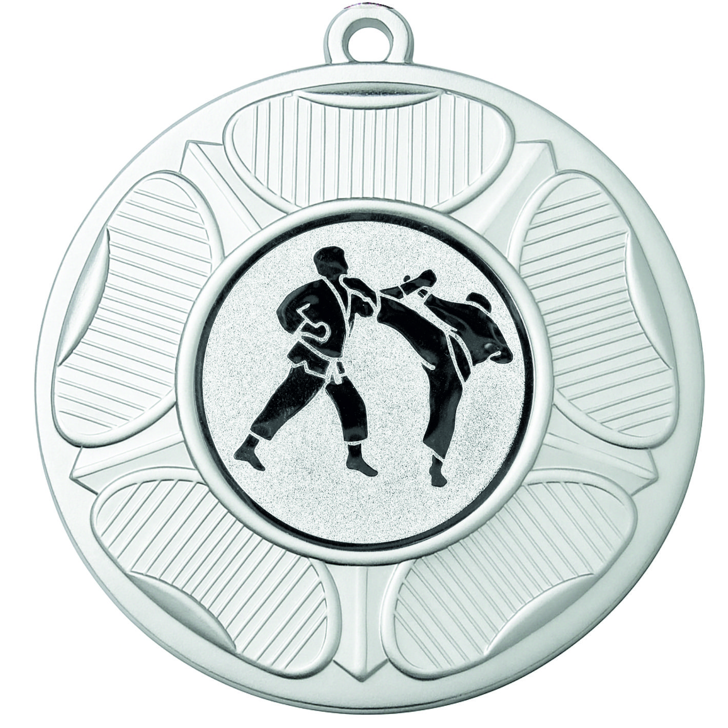 Silver Tudor Rose Karate Medal - FREE Ribbon - BIE.M9458.02 - This 50mm Metal cast Medal includes a free Karate logo and free premium quality ribbon.