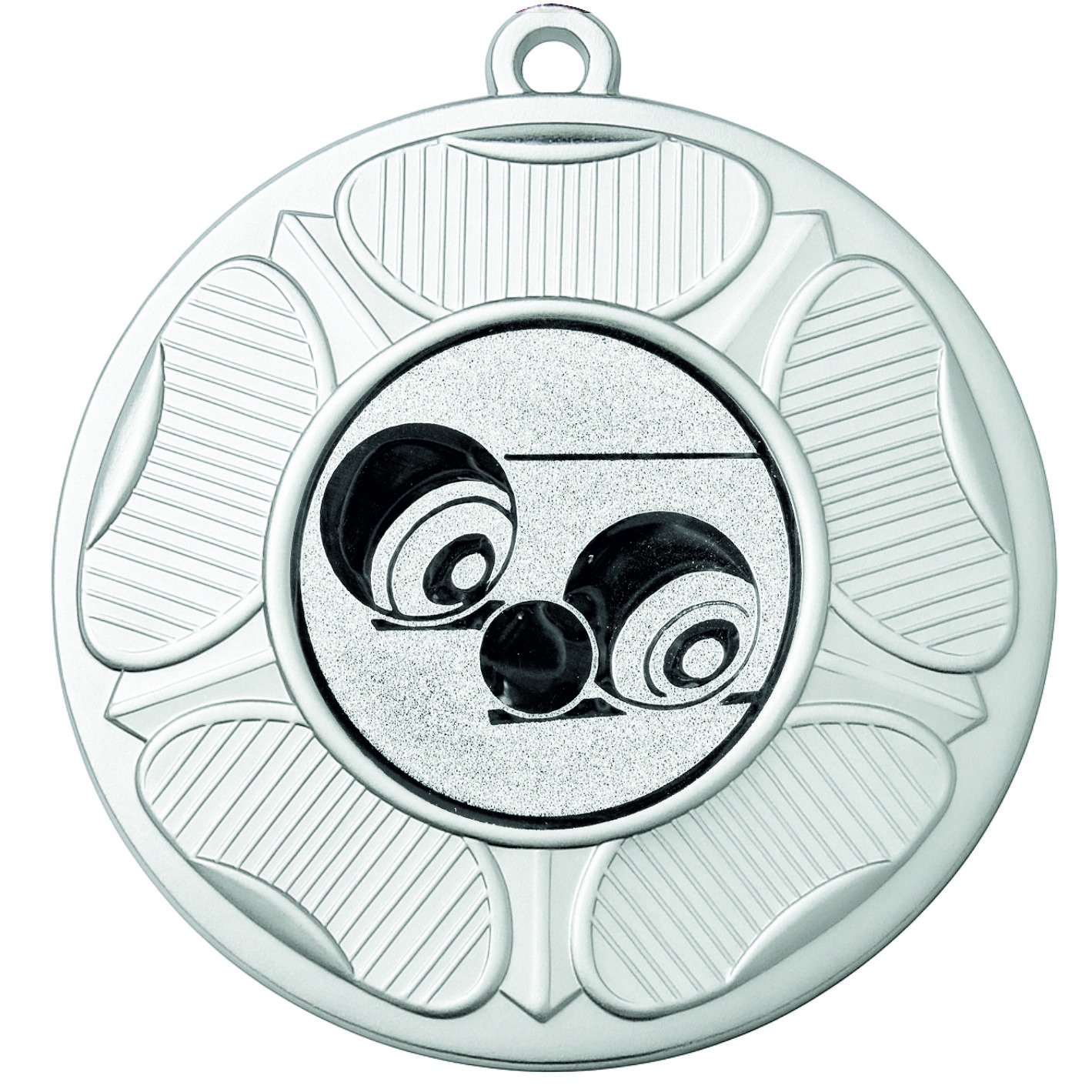 Silver Tudor Rose Lawn Bowls Medal - FREE Ribbon - BIE.M9458.02 - This 50mm Metal cast Medal includes a free Lawn Bowls logo and free premium quality ribbon.