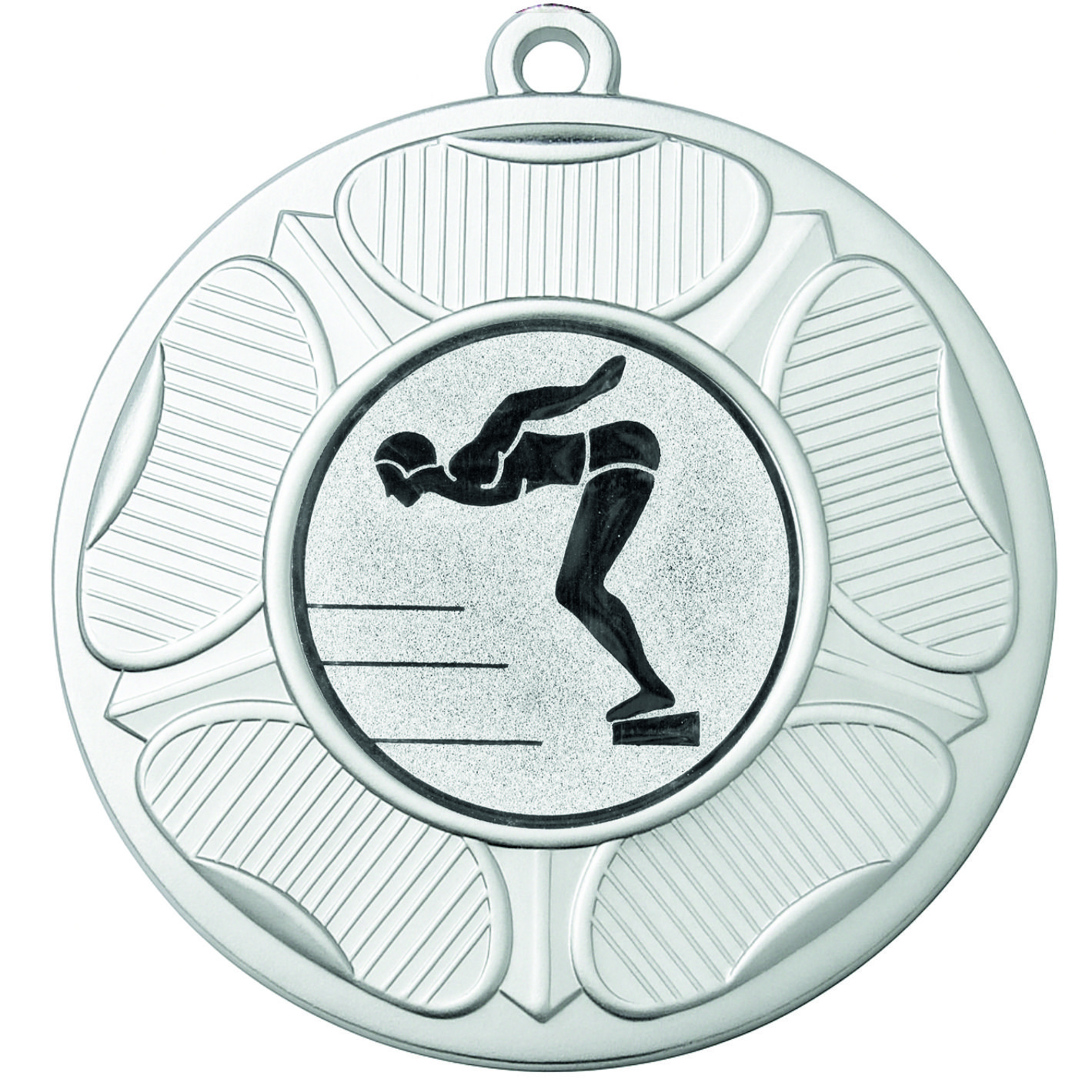 Silver Tudor Rose Male Swimming Medal-FREE Ribbon-BIE.M9458.02 - This 50mm Metal cast Medal includes a free Male Swimming logo and free premium quality ribbon.