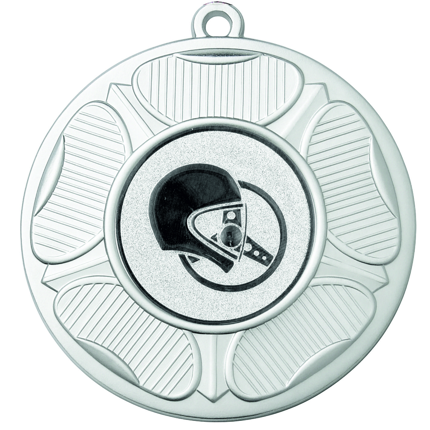 Silver Tudor Rose Motor Sport Medal-FREE Ribbon-BIE.M9458.02 - This 50mm Metal cast Medal includes a free Motor Sport logo and free premium quality ribbon.