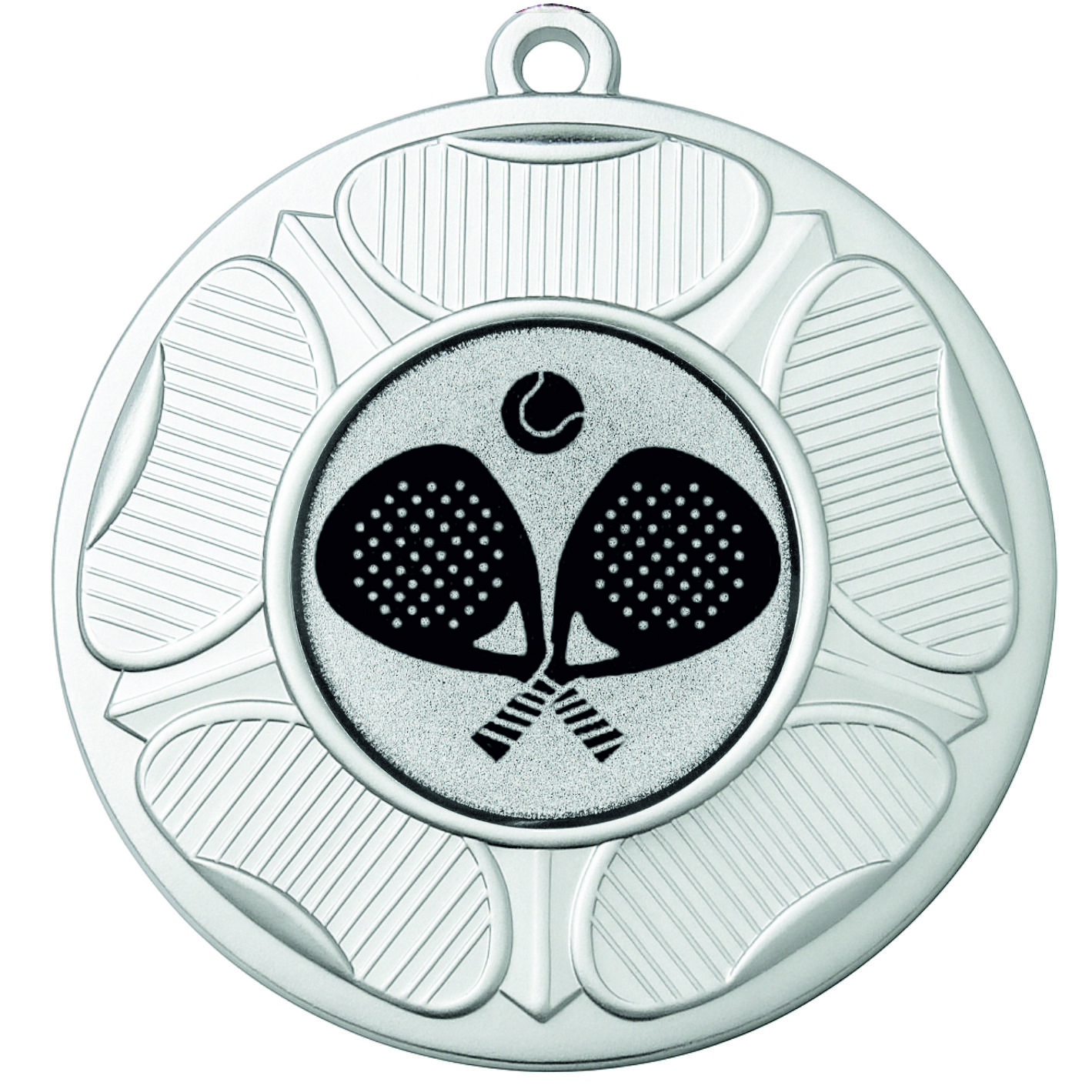 Silver Tudor Rose Padel Medal-FREE Ribbon-BIE.M9458.02 - This 50mm Metal cast Medal includes a free Padel logo and free premium quality ribbon.