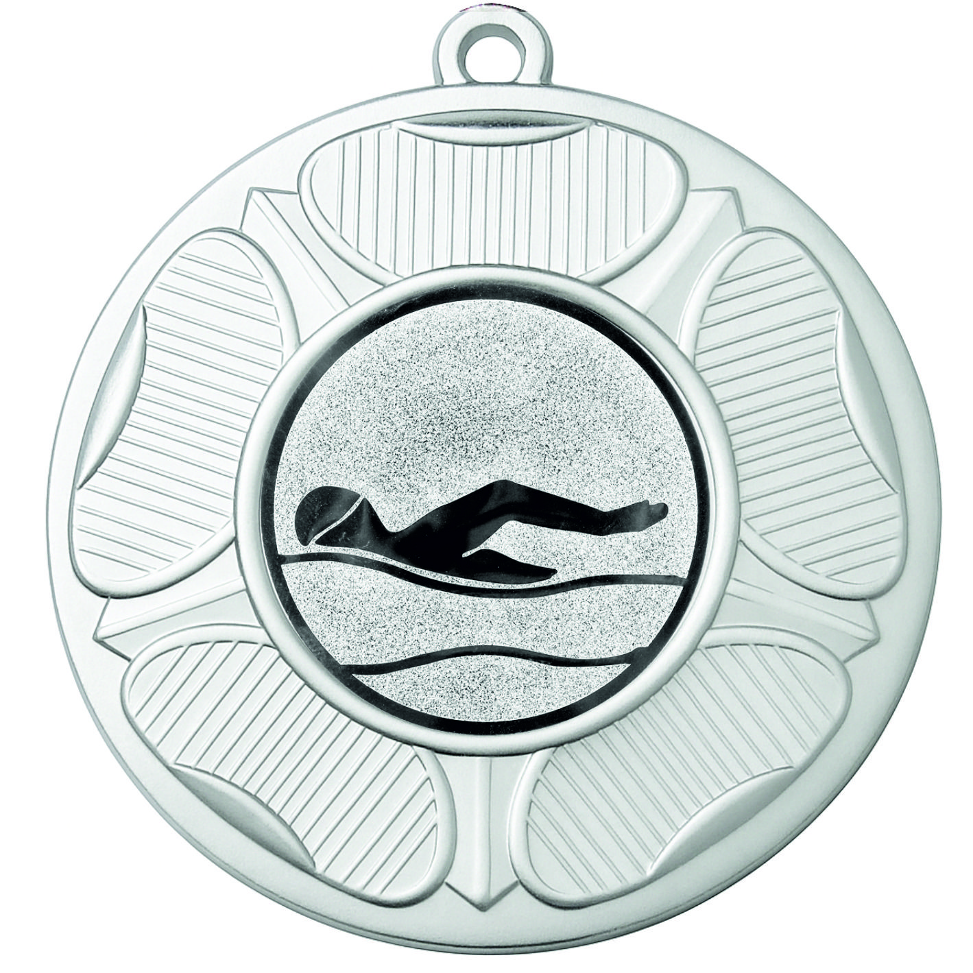 Silver Tudor Rose Swimming Medal-FREE Ribbon-BIE.M9458.02 - This 50mm Metal cast Medal includes a free Swimming logo and free premium quality ribbon.