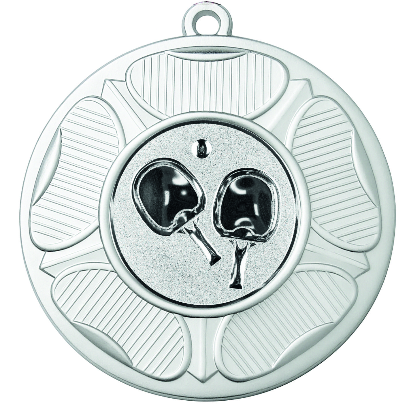 Silver Tudor Rose Table Tennis Medal-FREE Ribbon-BIE.M9458.02 - This 50mm Metal cast Medal includes a free Table Tennis logo and free premium quality ribbon.