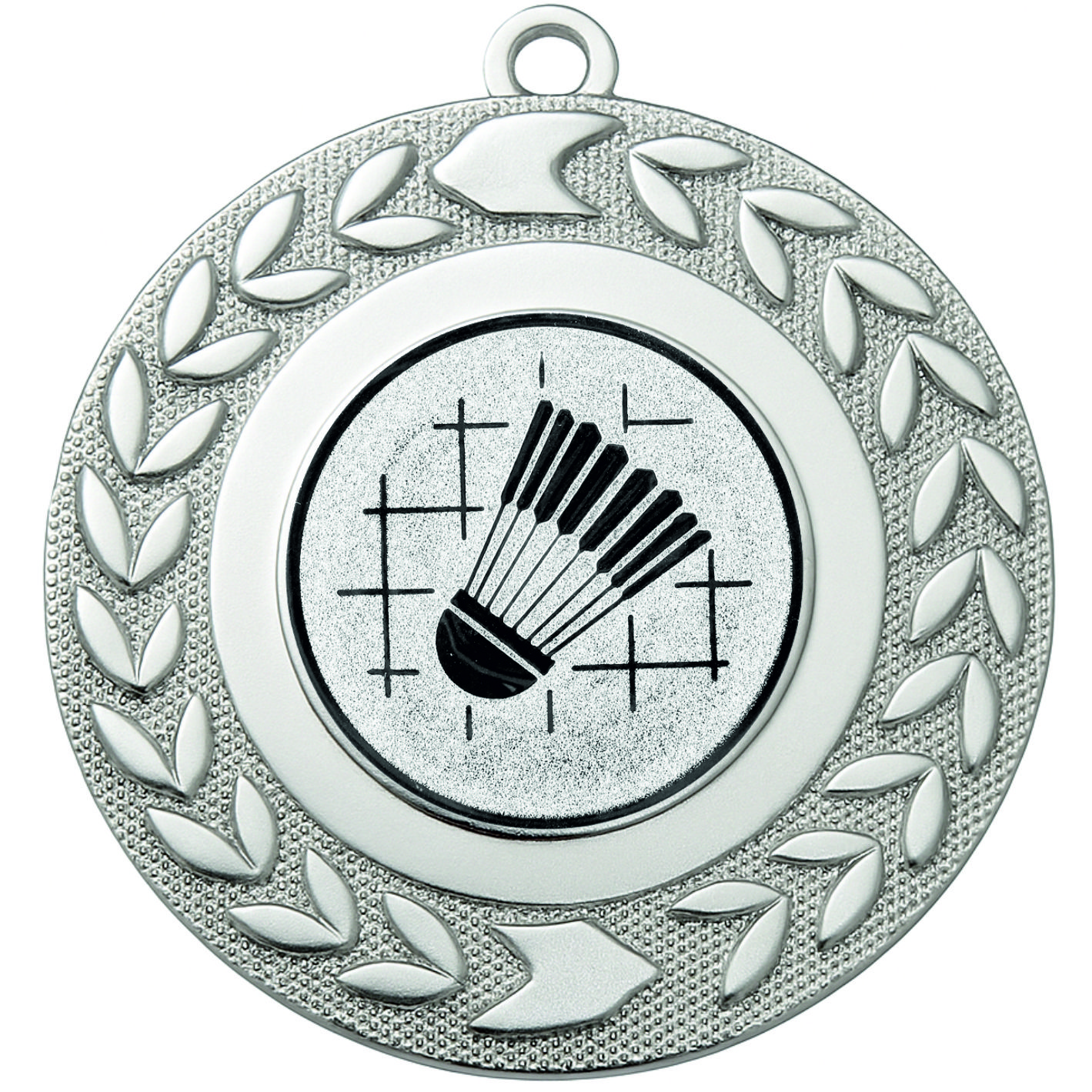Silver Wreath Badminton Medal - FREE Ribbon - BIE.M9460.02 - This 50mm Metal cast Medal includes a free Badminton logo and free premium quality ribbon.