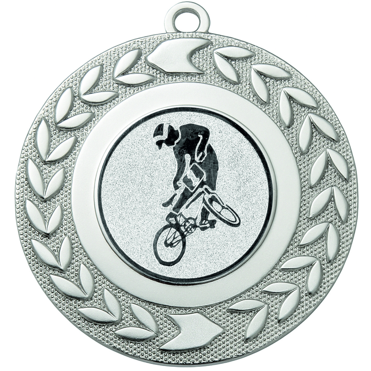 Silver Wreath BMX Medal - FREE Ribbon - BIE.M9460.02 - This 50mm Metal cast Medal includes a free BMX logo and free premium quality ribbon.