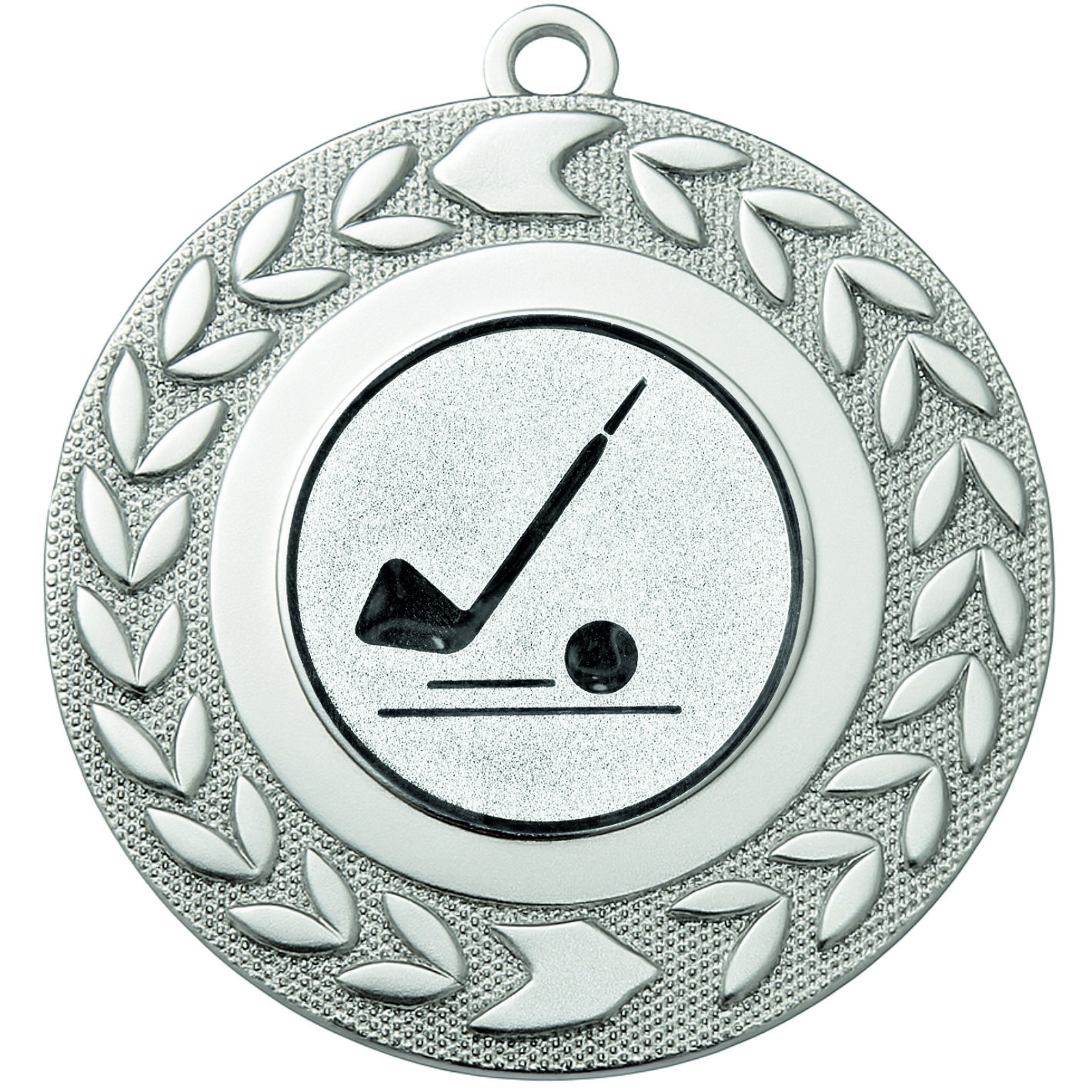 Silver Wreath Golf Putter Medal - FREE Ribbon - BIE.M9460.02 - This 50mm Metal cast Medal includes a free Golf Putter logo and free premium quality ribbon.