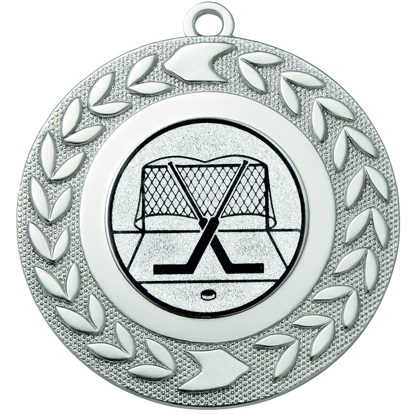 Silver Wreath Ice Hockey Medal - FREE Ribbon - BIE.M9460.02 - This 50mm Metal cast Medal includes a free Ice Hockey logo and free premium quality ribbon.