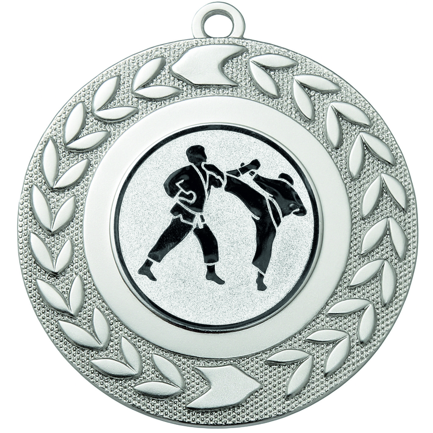 Silver Wreath Karate Medal - FREE Ribbon - BIE.M9460.02 - This 50mm Metal cast Medal includes a free Karate logo and free premium quality ribbon.