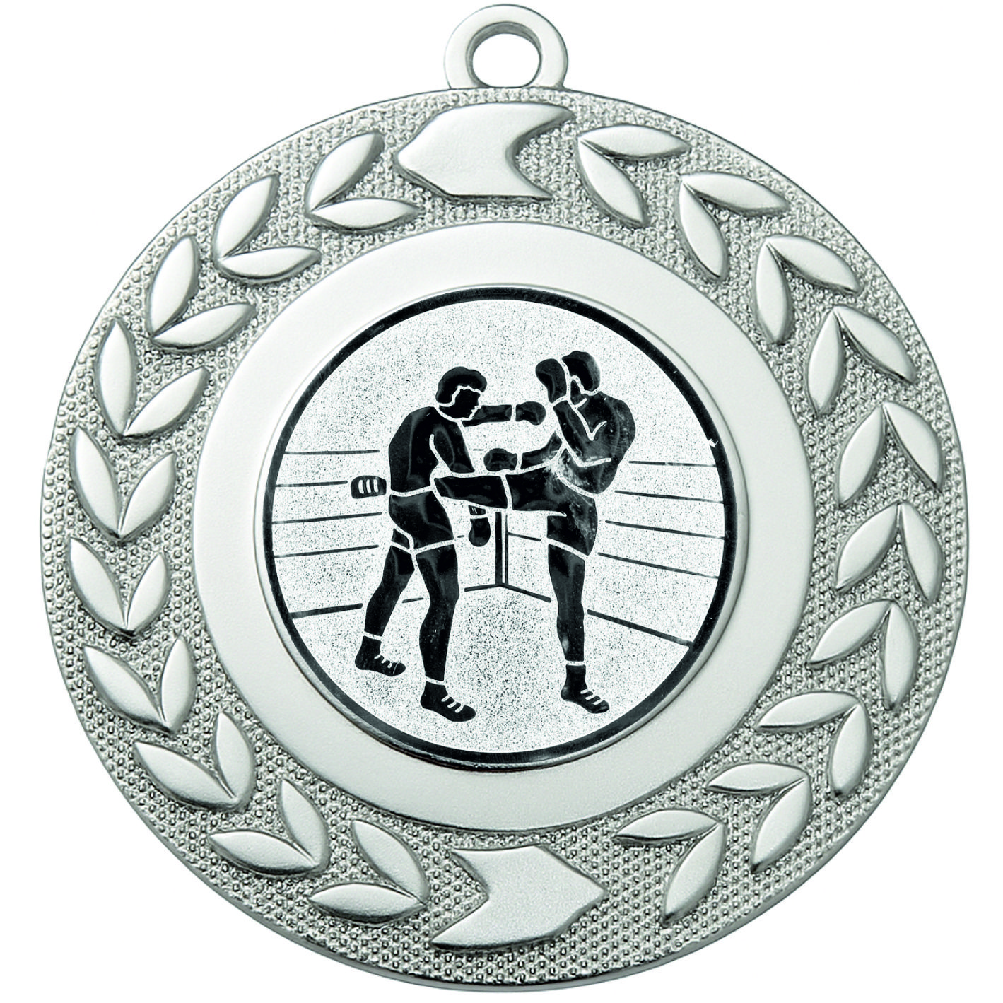 Silver Wreath Kickboxing Medal - FREE Ribbon - BIE.M9460.02 - This 50mm Metal cast Medal includes a free Kickboxing logo and free premium quality ribbon.