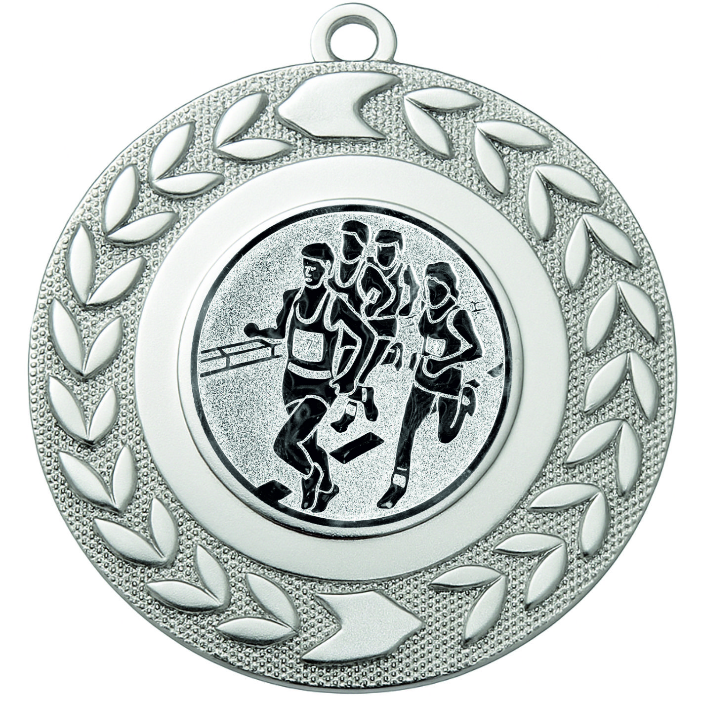 Silver Wreath Marathon Medal - FREE Ribbon - BIE.M9460.02 - This 50mm Metal cast Medal includes a free Sprinting logo and free premium quality ribbon.