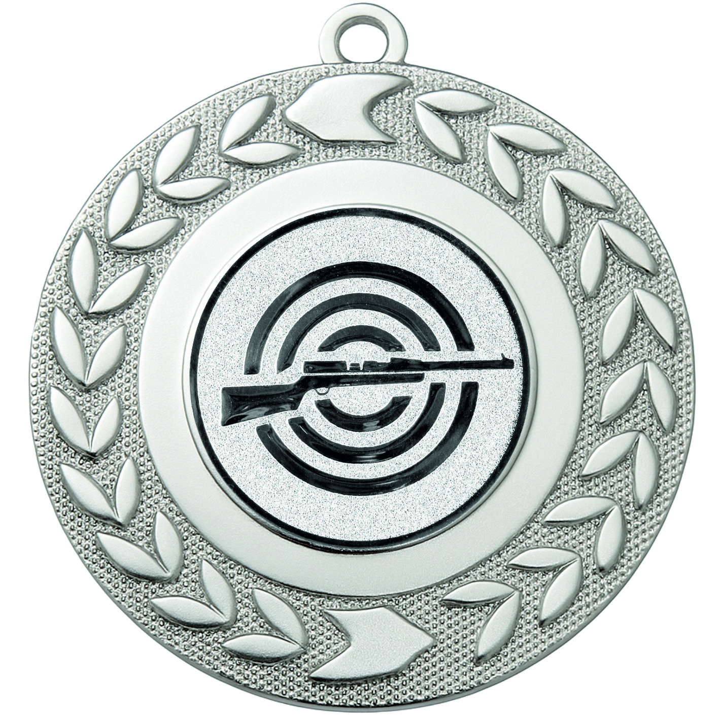 Silver Wreath Rifle Shooting Medal - FREE Ribbon - BIE.M9460.02 - This 50mm Metal cast Medal includes a free Rifle Shooting logo and free premium quality ribbon.