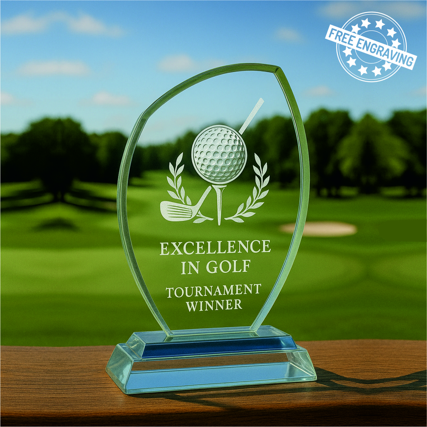 Tapered Oval Glass with Blue Stand - Presentation Box - GL.029. This Glass award comes fully personalised by one of our experienced glassware engravers - One of the Best Value for Money products available in this range. Fast Delivery straight to your door.